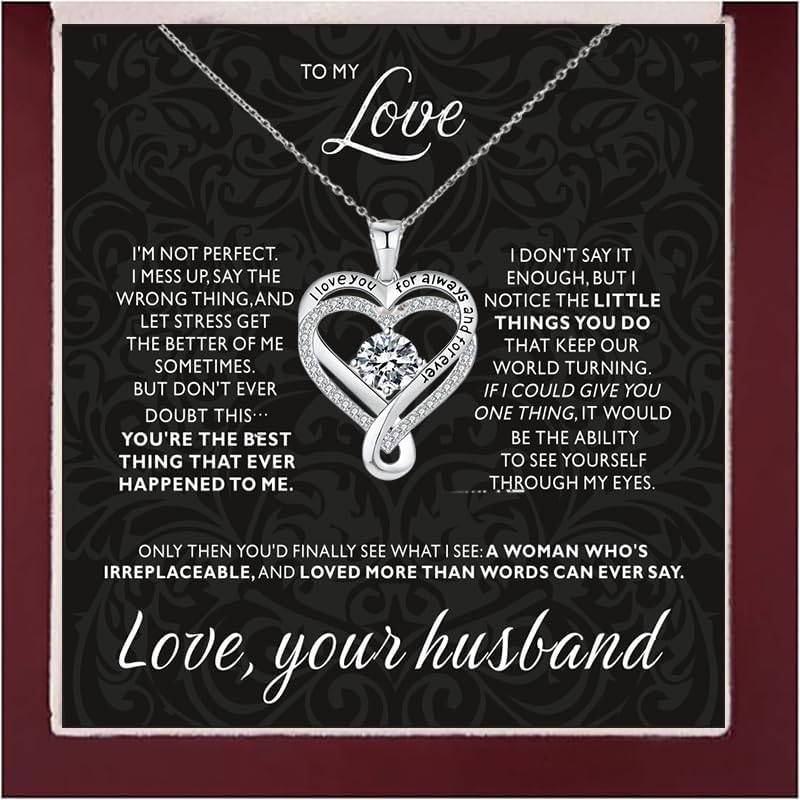 To My Love 925 Silver Heart Necklace From Husband,Infinite Love Knot Necklace for Women with Gift Box,I Love You Necklace for Wife Girlfriend Birthday Valentine's Day Christmas Gifts