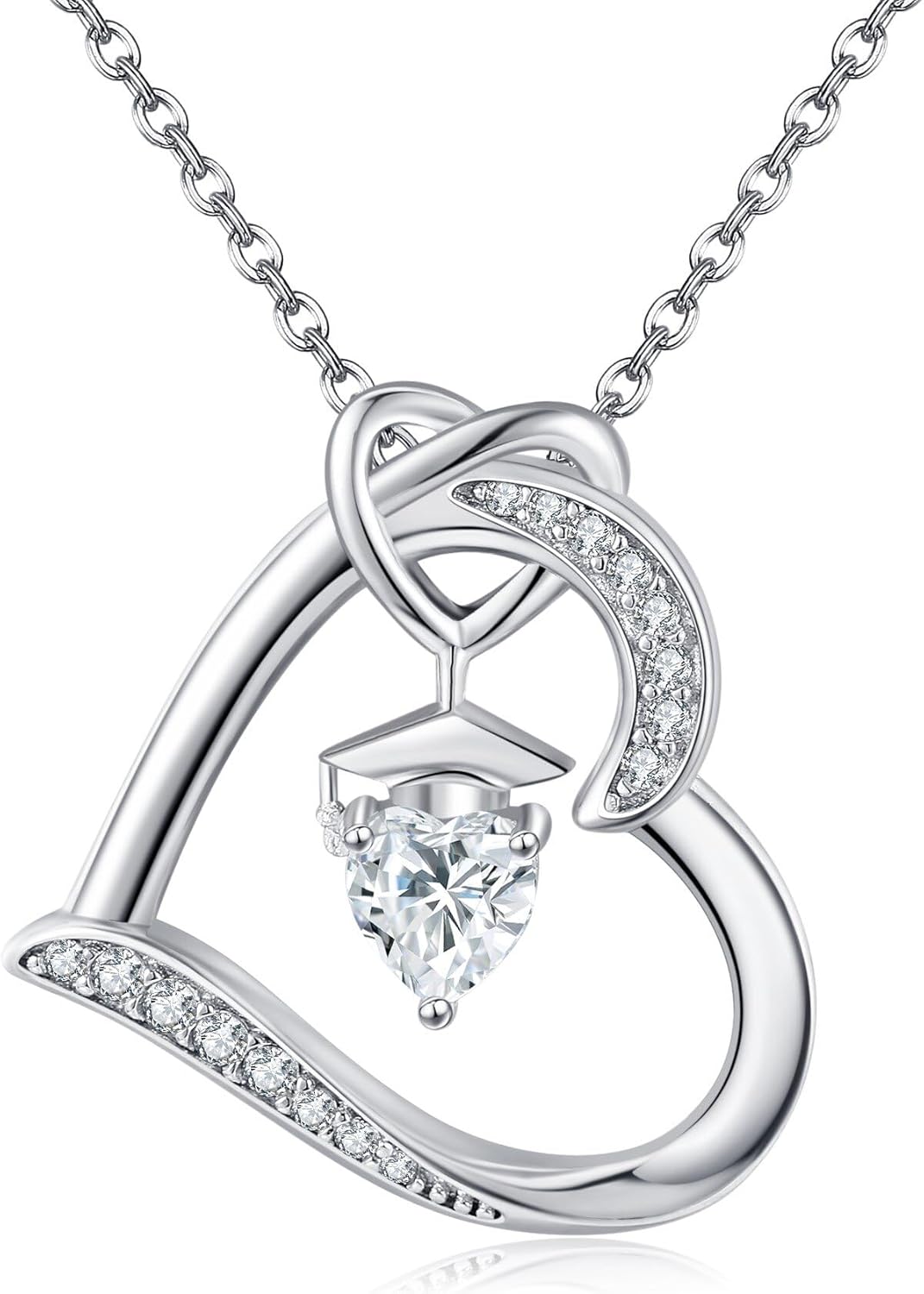 YAFEINI Birthstone Graduation Necklace S925 Sterling Silver Class of 2024 Bachelor Cap Necklaces Class of 2025 Heart Pendant College High School Graduation Jewelry Gifts for Women