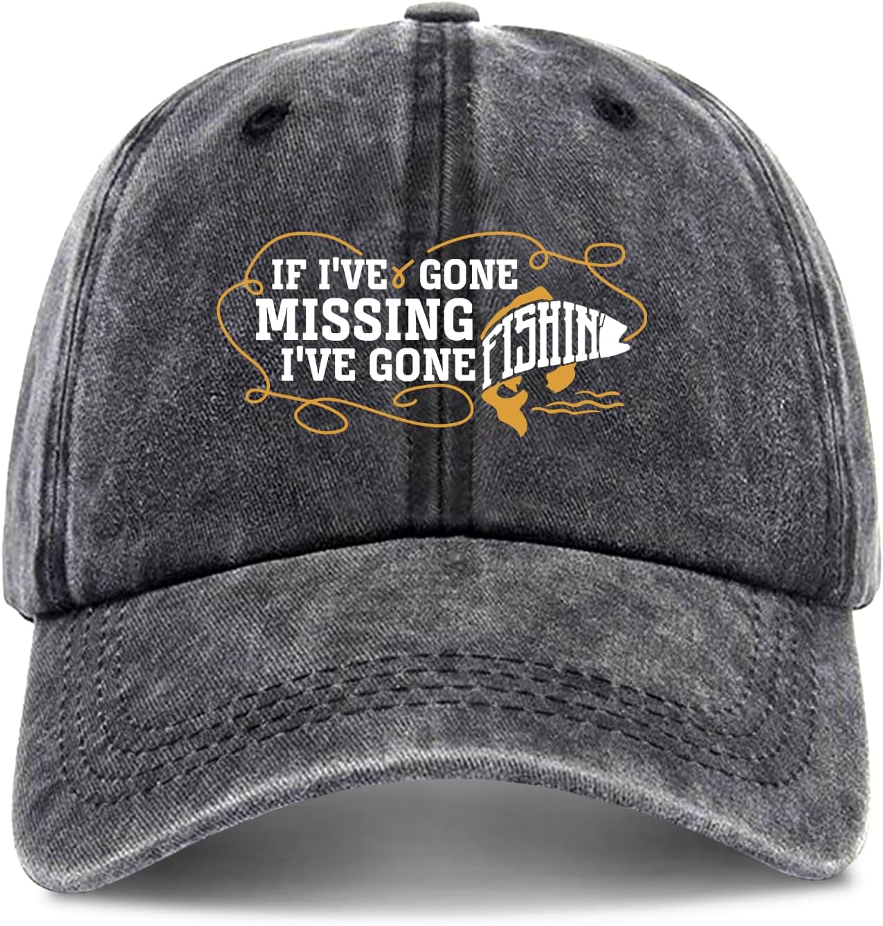 zcyhtqp, If I've Gone Missing I've Gone Fishing, Funny Baseball Cap, Funny Fishing Hats with Sayings, Humor Caps, Adjustable Cotton Baseball Cap, Birthday Gift for Fishing Lover Black