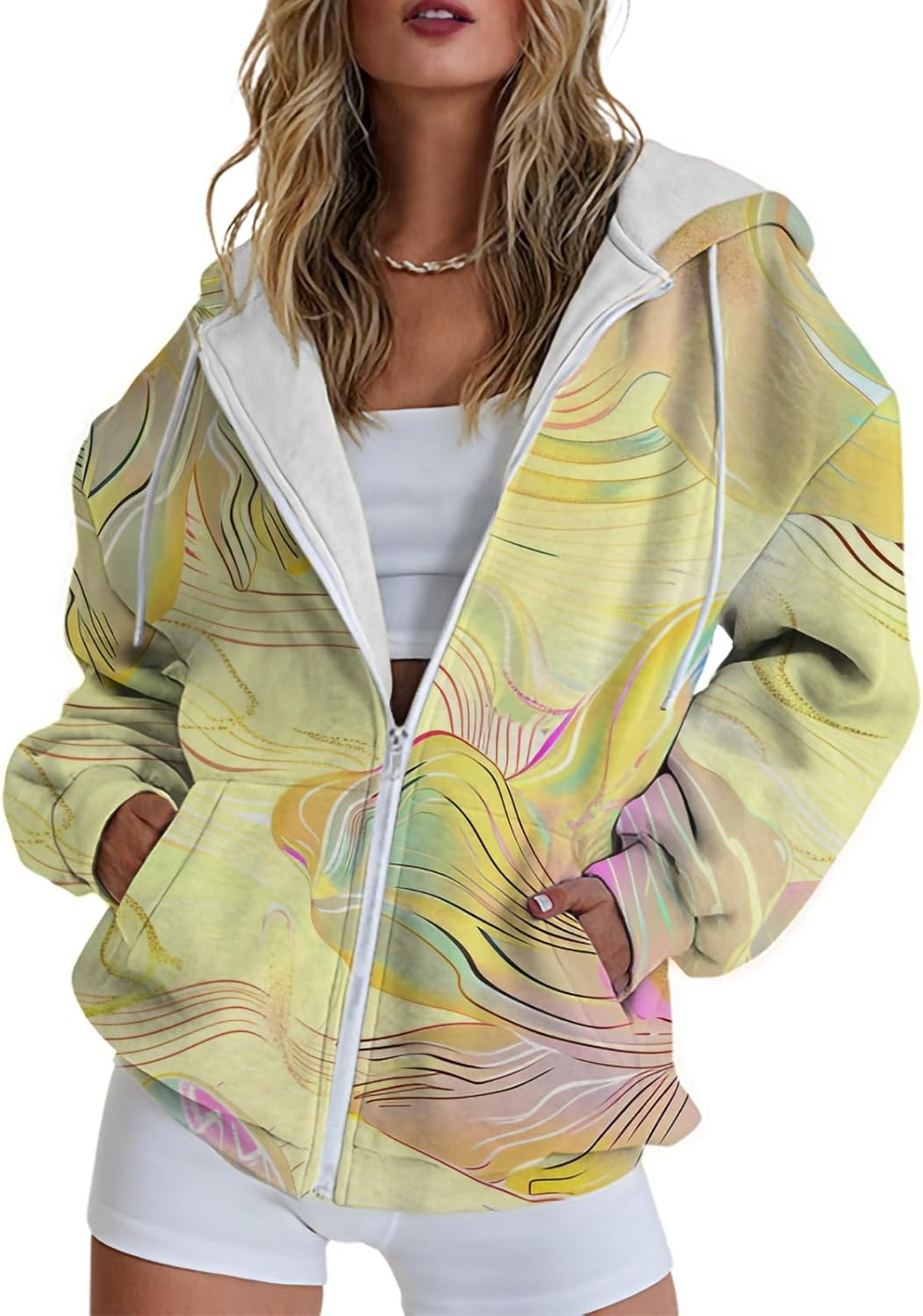 Lightweight Hoodies Womens Casual Comfy Zipper Long Sleeve Drawstring Spring Sweatshirt Elegent Boho Street Clothes
