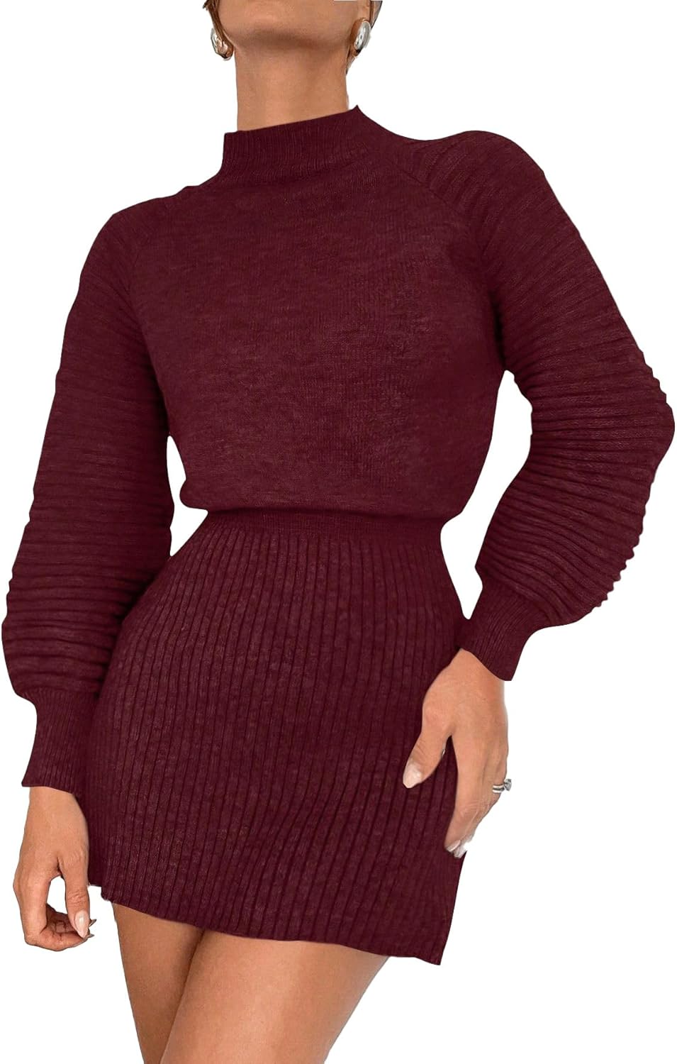 SKAYS Women's 2025 Turtle Neck Mini Sweater Dress Long Ribbed Sleeve Bodycon Knit Casual Winter Dress Cute Fall Outfits
