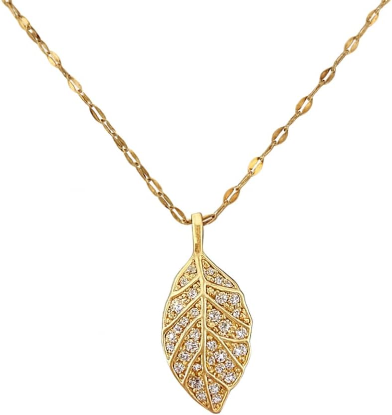 Elegant Gold Leaf Pendant Necklace with Cubic Zirconia Crystals, 18K Gold Plated Chain, Nature-Inspired Design for Women