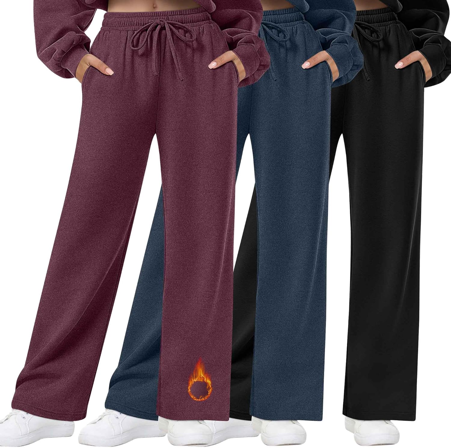 3 Pack Womens Fleece Lined Sweatpants Straight Leg Thermal Baggy Lounge Pants Elastic Waist Joggers with Pockets