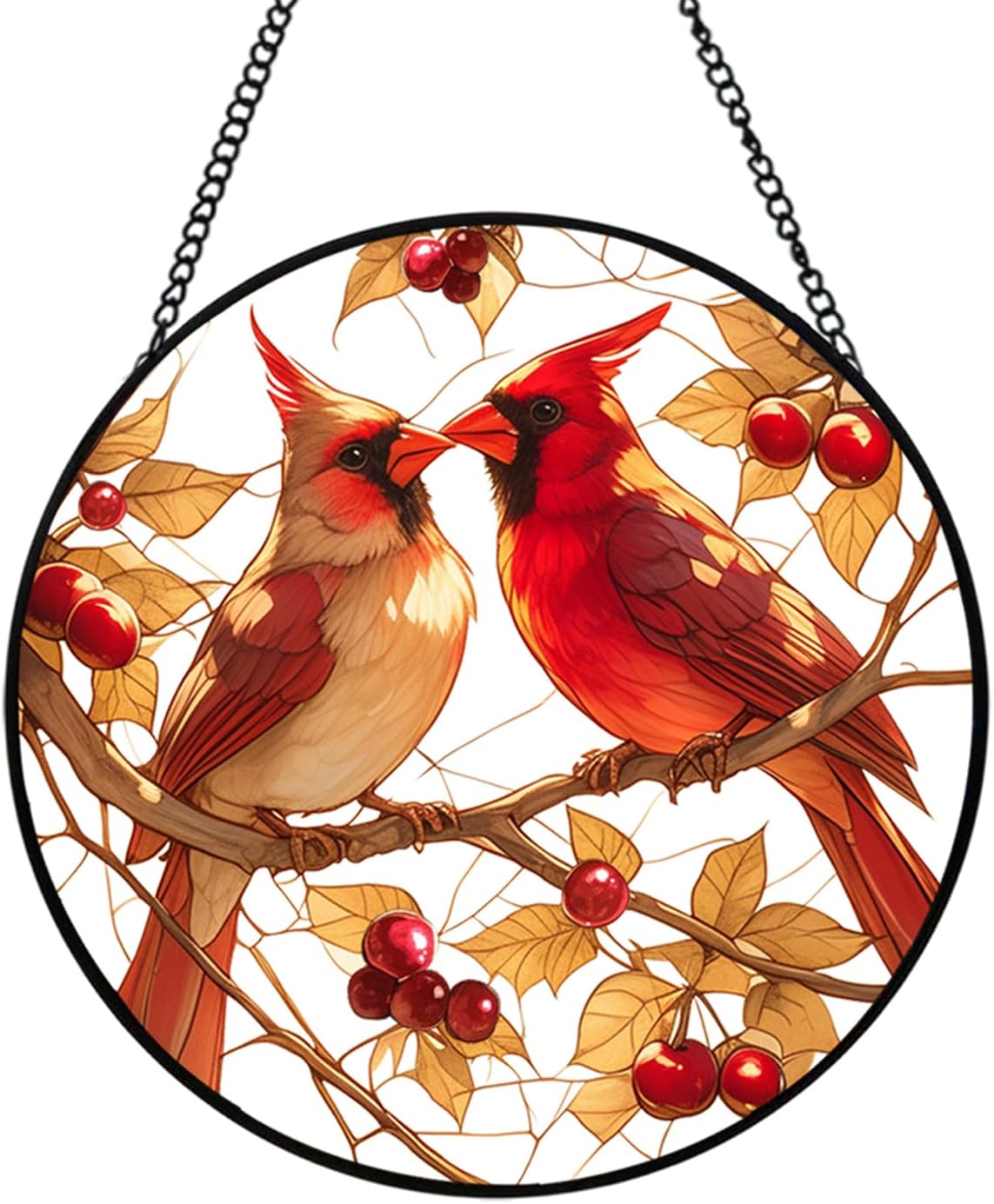 - 【Classic Stained Glass Style & Multiple Options】Boasting a retro and elegant stained glass texture, it’s available in multiple styles (berries, blossoms, leaves) to seamlessly match different home decoration needs. A cozy pick for cardinal suncatchers for indoor windows—berry branch design with warm seasonal charm.