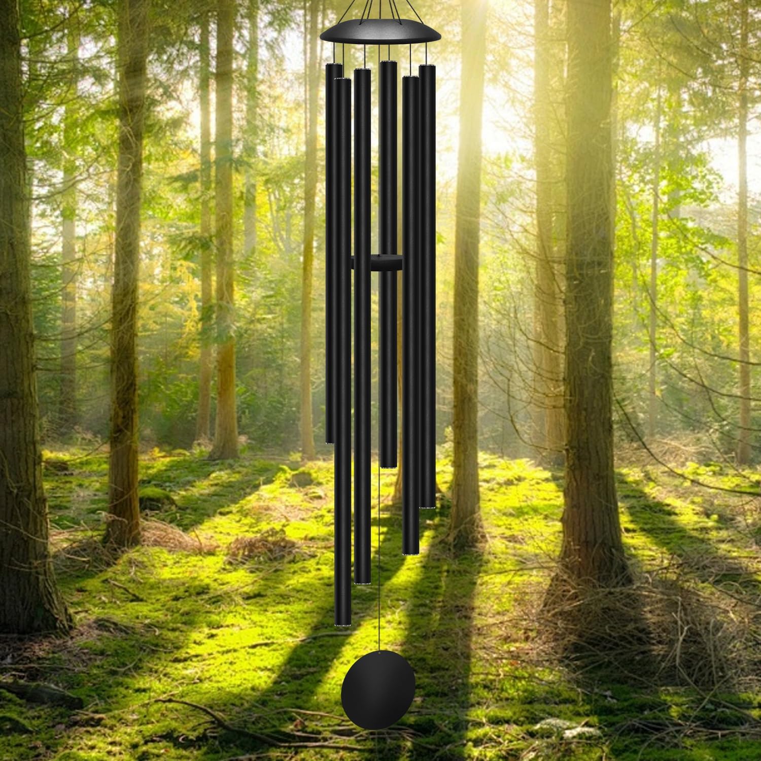 - 66 inch Extra Large Wind Chimes: This beautifully crafted wind chime features extra-long tubes ranging from 36.5 inches (longest) to 26.5 inches (shortest), each with a 1.2-inch diameter and a 0.06-inch wall thickness. Every tube is professionally tuned to produce deep, harmonious, soothing melodies when played together.The single-string threading design ensures minimal interference with vibration frequencies, delivering clear tones and long-lasting resonance.