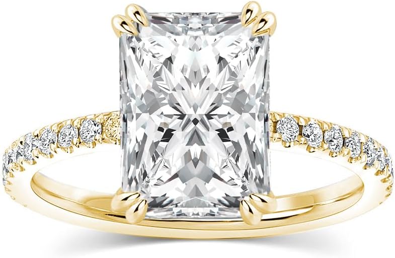 4.5 Carat Radiant Cut Lab Created Moissanite Engagement Ring for Women, D Color VVS1 Sterling Silver Promise Ring with Pavé Band