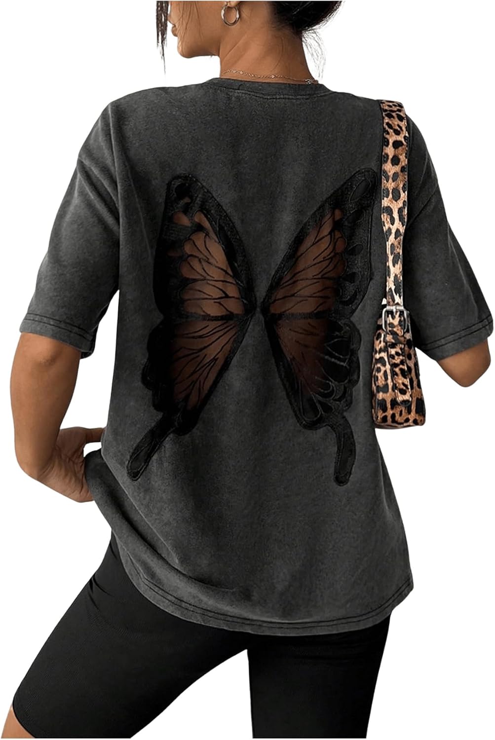 Women's Butterfly Graphic Oversized Tee Shirt Vintage Cut Out Half Sleeve Crew Neck T-Shirt Going Out Tops
