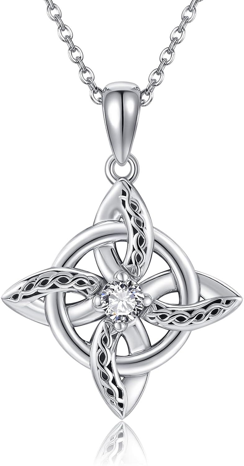 SNOWELLE Witches Knot Necklace 925 Sterling Silver Celtic Knot Pendant Jewelry Gifts for Women