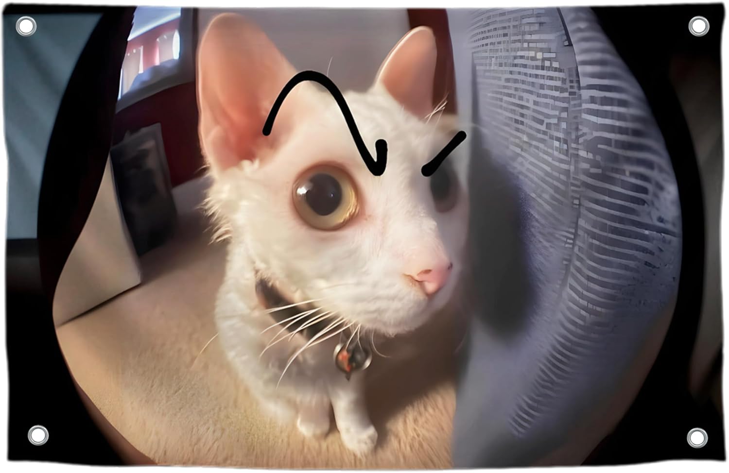 3x5 Feet Cat with Painted Eyebrows Tapestry Single Sided Flag with Four Brass Grommets - Polyester Funny Cats Outdoor or Indoor Flag - Funny Cats Poster in Fish Eye - Animals Tapestry For Classroom