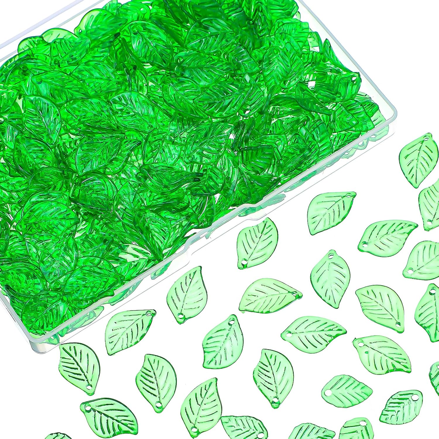 400PCS 2 Size Green Leaf Beads for Jewelry Making, Transparent Acrylic Green Leaf Charms Leaves Pendants for Jewelry Making DIY Necklace Earring Bracelet Crafts
