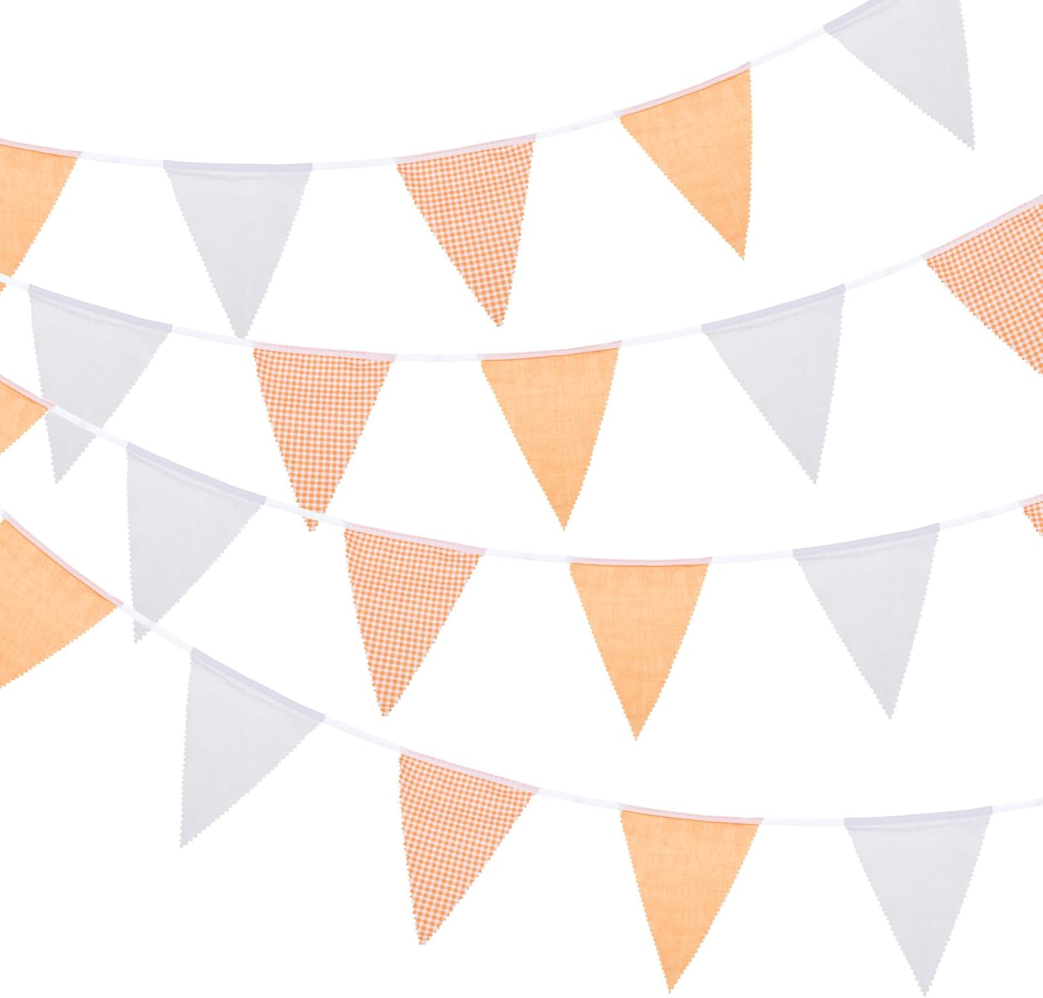 - Orange and White Pennant Banner, Pennant Size: 15 x 18 cm/6 x 7 inch; String Length: 10m/33ft; Color: Orange and White; Material: Cotton; In the package:1 x Orange White Checkered Pennant Banner