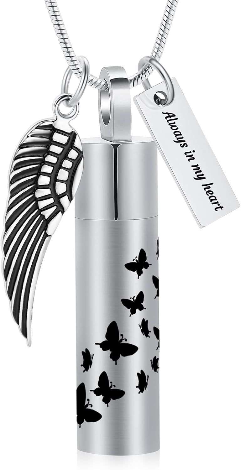 zeqingjw Cremation Jewelry Butterfly Cylinder Urn Necklace for Ashes Stainless Steel Keepsake Ash Holder Funeral Pendant of Loved Ones