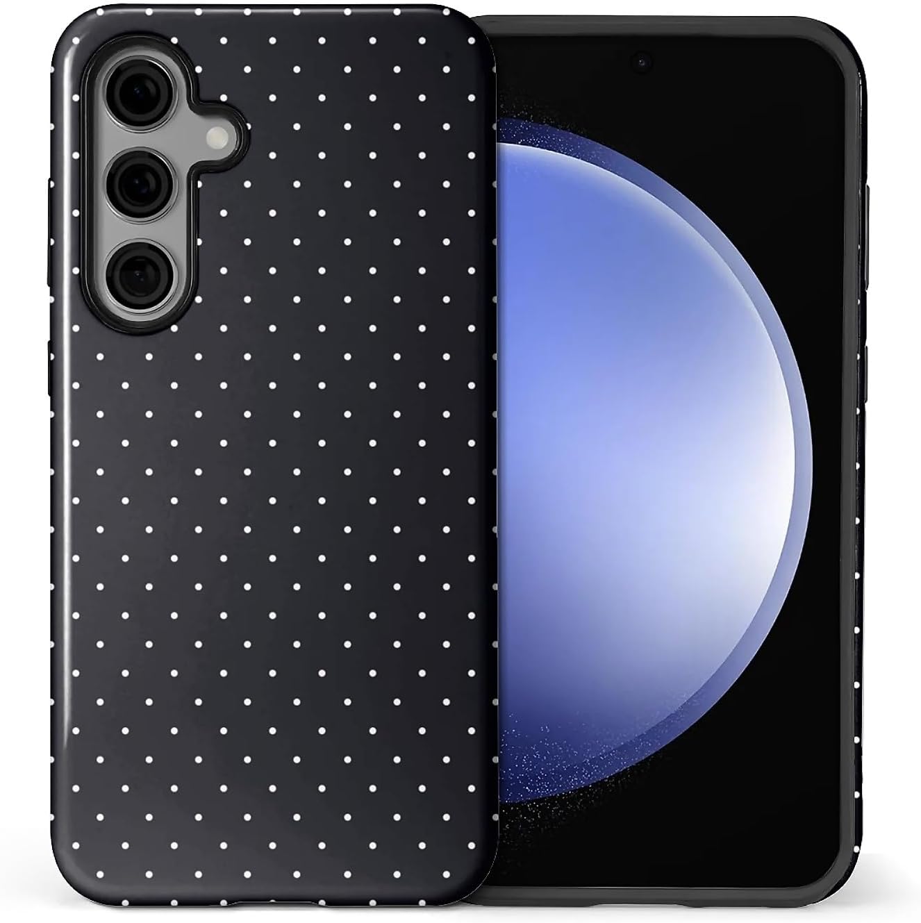 for Samsung Galaxy S25 Case,HL2 Polka Dot Black Hybrid 2 Layer Hard Shell Silicone Protective Pattern Design Case