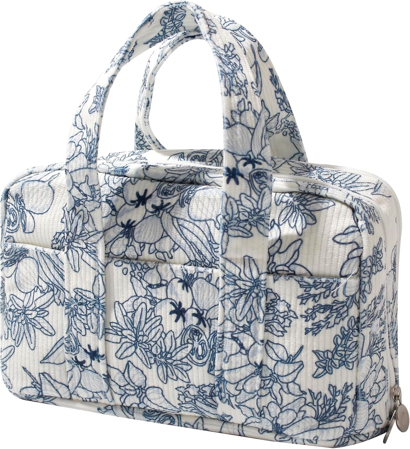 Large Pencil Case Pouch Extra Big Pencil Bag Wide Opening 5 Compartments Soft Corduroy Pen Bag Organizer with Zipper School Supplies for Girls Kids (A Navy blue flower)