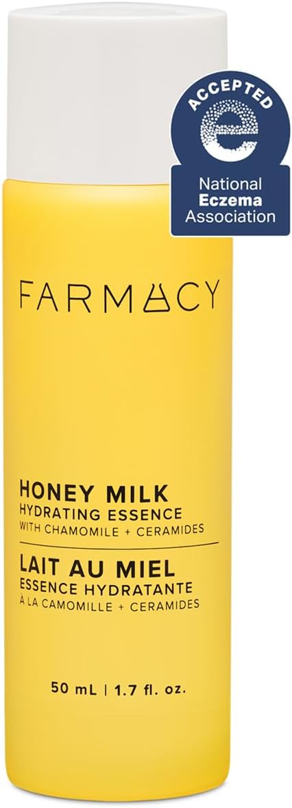 Farmacy Honey Milk Face Essence - Hydrating Milky Toner with Honey, Ceramides + Chamomile - Helps Strengthen Skin Barrier + Replenish Moisture - Soothing + Calming Skincare (50ml)