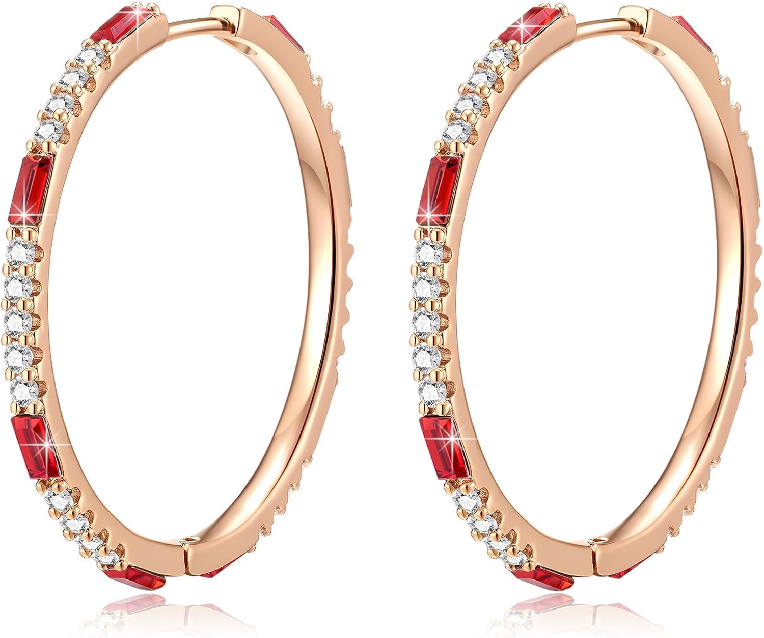 EVEVIC Austrian Crystal Lightweight Champagne Gold Hoop Earrings for Women Trendy 14K Gold Plated Hoops Earring Jewelry Gift