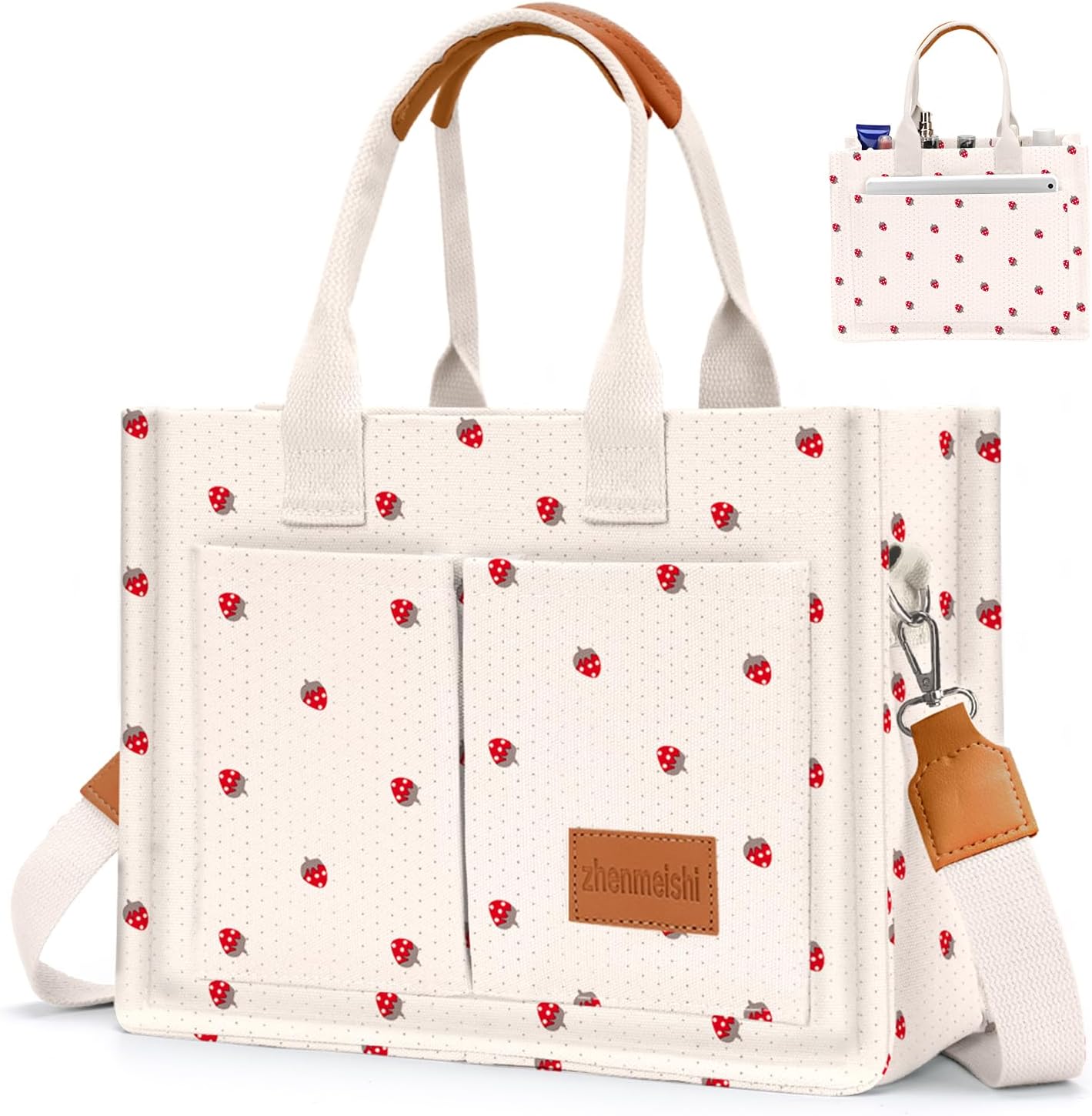 Canvas Tote Bag for Women with Pockets Crossbody Bag Tote Shoulder Handbags Casual Work Bags Everything Tote Bag