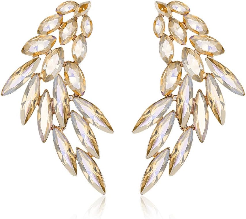 Denifery Wedding Bridal Crystal Dangle Earrings Rhinestone Cluster Wings Statement Stud Earrings Fashion Sparkly Earrings Jewelry for Women (Champagne)
