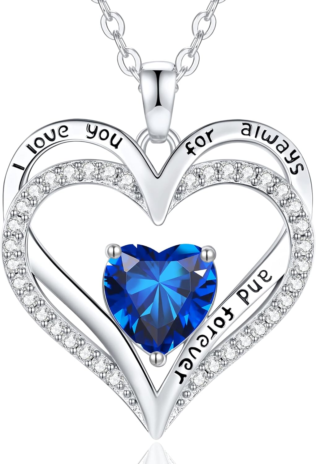 CDE Birthstone Necklaces for Women, 925 Sterling Silver Forever Love Heart Pendant Necklace, Birthday Jewelry Gift for Wife Mom Girlfriend Her