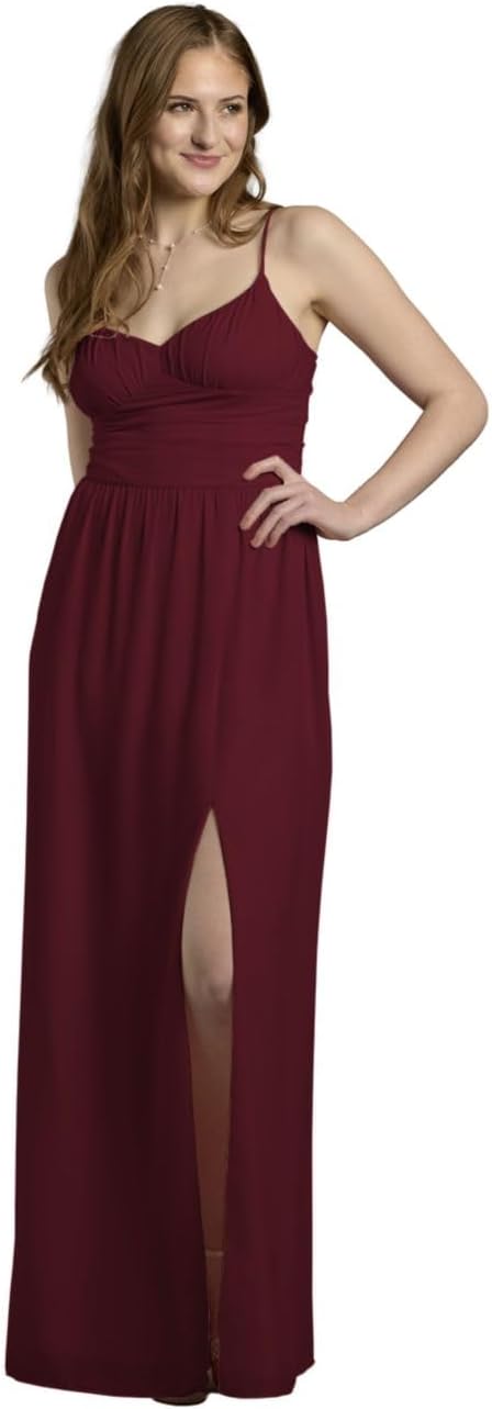 David's Bridal Chiffon Spaghetti Strap A-Line Dress with Slit