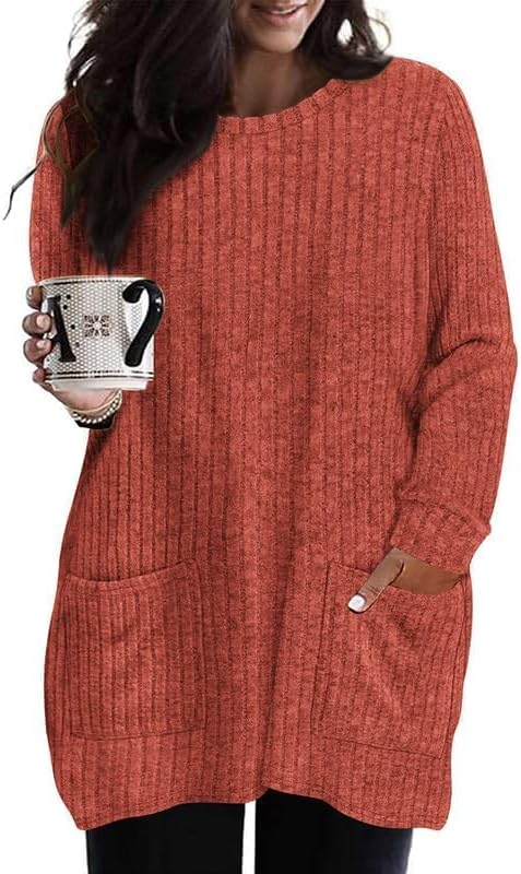 TIYOMI Womens Plus Size Long Sleeve Tops Crewneck Casual Fall Shirts Oversized Long Sweaters Loose Tunic Tops Pockets XL-5XL
