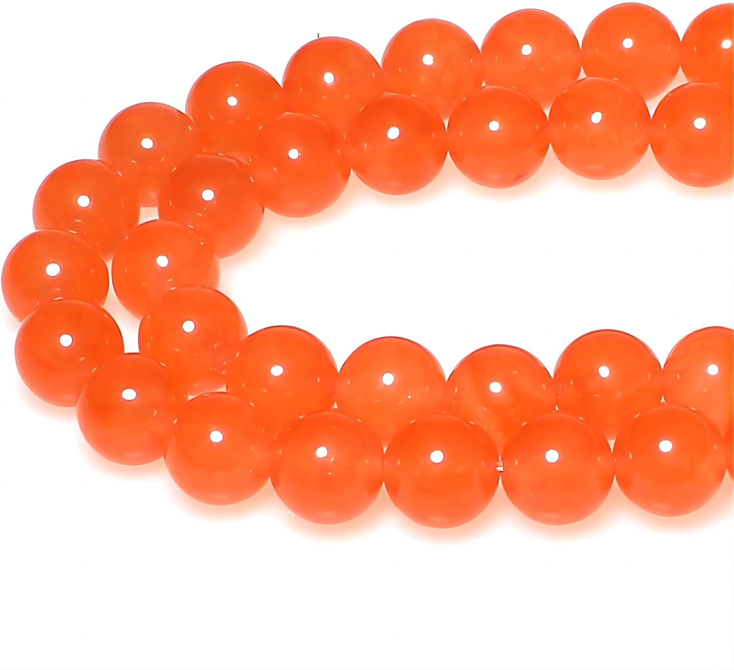 MJDCB Stone Beads 12mm 30pcs Round Orange Red Jade Loose Gemstone Bead Charms for Jewelry Making Bracelet Necklace Earring Pendant