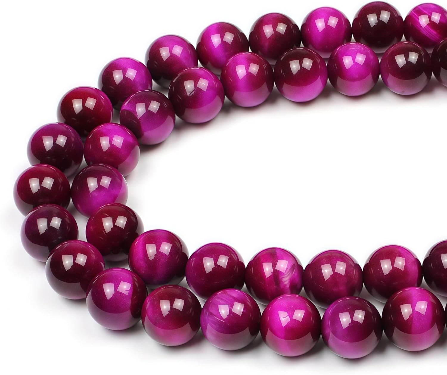 MJDCB Stone Beads 8mm 43pcs Round Rose Red Tiger's Eye Loose Gemstone Bead Charms for Jewelry Making Bracelet Necklace Earring Pendant