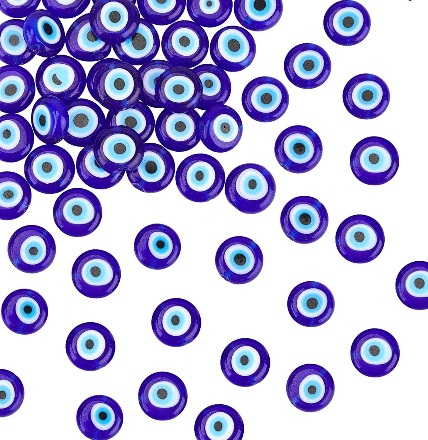 - Package Include -- 1 strand blue flat round evil eye lampwork beads. Size: about 10mm in diameter, 4mm thick, hole: 1mm, about 38pcs/strand, 16"(40.5cm). The price of glass and resin may be cheaper, but compared to lampwork beads, they are a soulless assembly line product.
