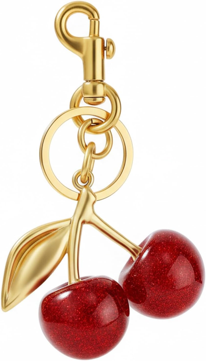 Cherry Keychains Bags Charms Purse for Women Girls, Metal Ring with Cherry for Home Car Keys Handbags