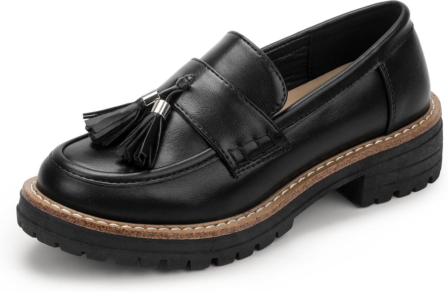 IDIFU IN2 Platform Loafers for Women Lug Sole Slip on Shoes Chunky Penny Low Heeled Loafers for Women Fall Work Business Office Party Casual Comfortable Fashion Closed Toe Dress Shoes with Tassel