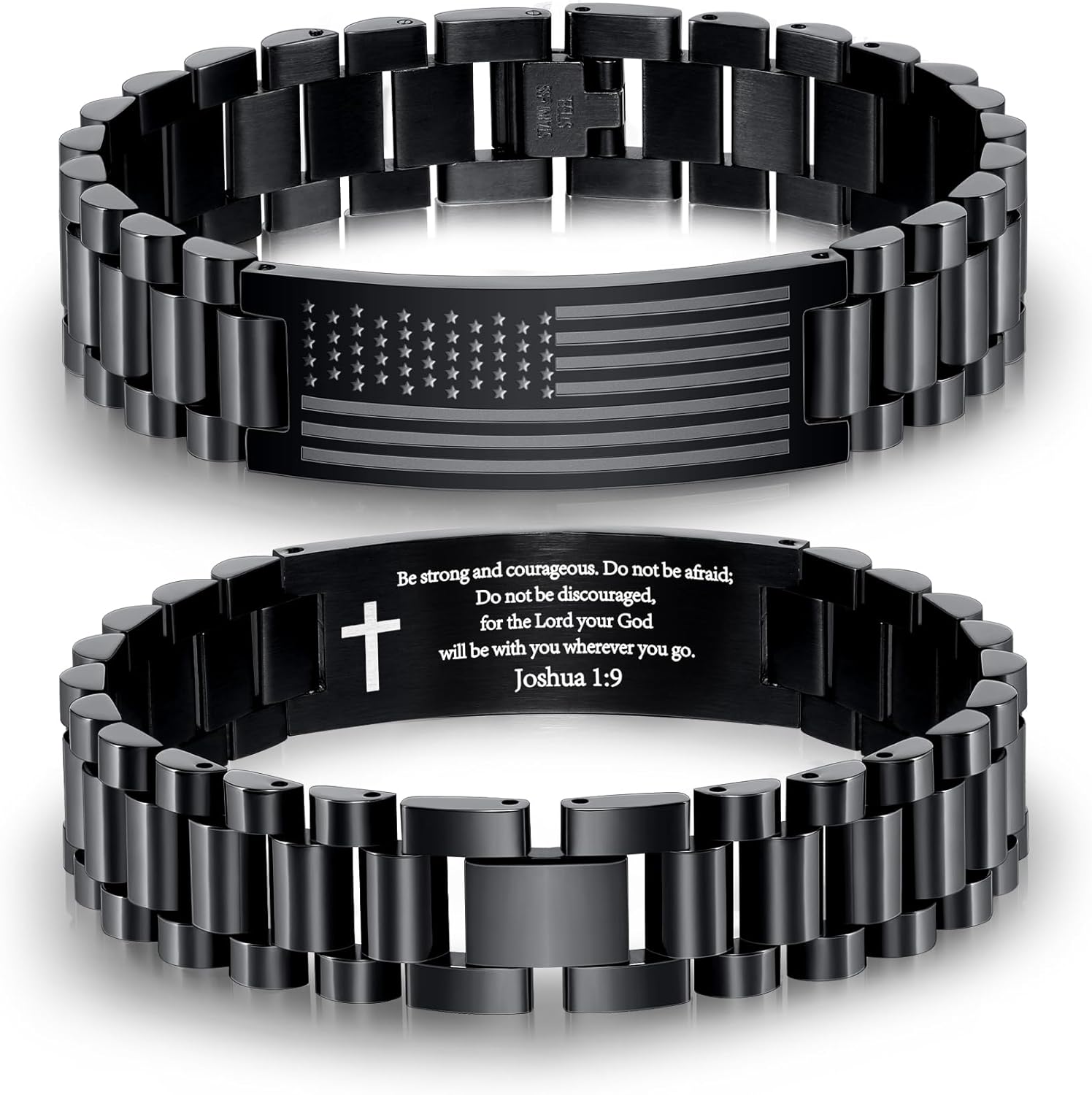P. BLAKE American Flag Bible Verse Bracelet for Men, Stainless Steel Engraved Scripture Bracelet Easter Christian Religious Christmas Birthday Jewelry Gifts