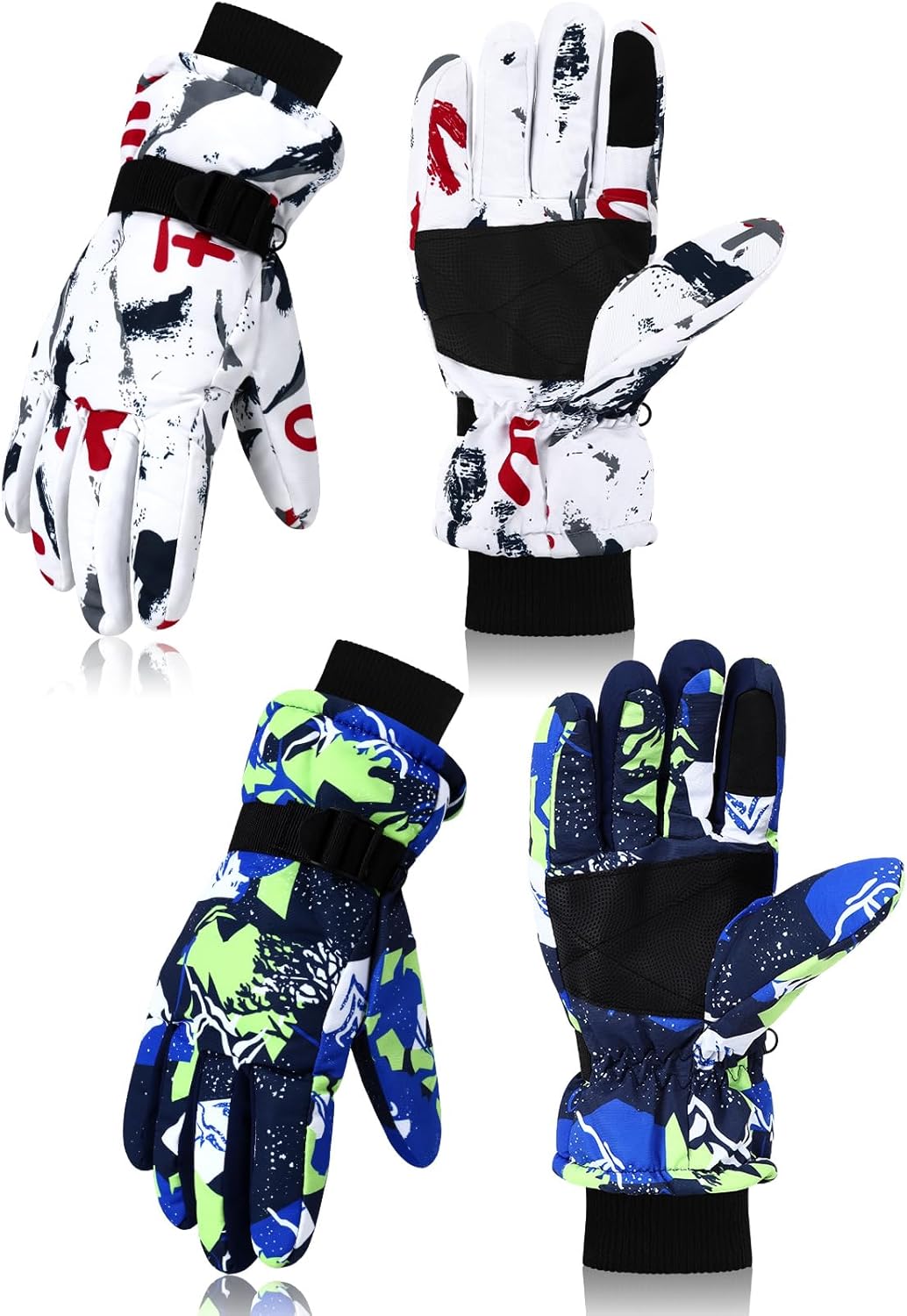 - Package Content: 2 pairs of winter gloves, including graffiti white and red and graffiti blue, which will not only meet your warm-keeping needs, but also add a touch of personality and let you shine in snow sports. Ski gloves are desigend in uniform size, suitable for most hand types, with loose and comfortable design, which ensures the free movement of hands
