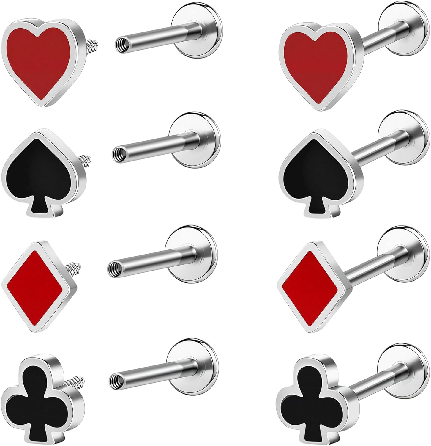 8Pcs 16G Poker medusa piercing jewelry Stainless Steel Lip Stud Labret Piercing lip conch studs snake bite Cartilage Daith Earrings for Women Men