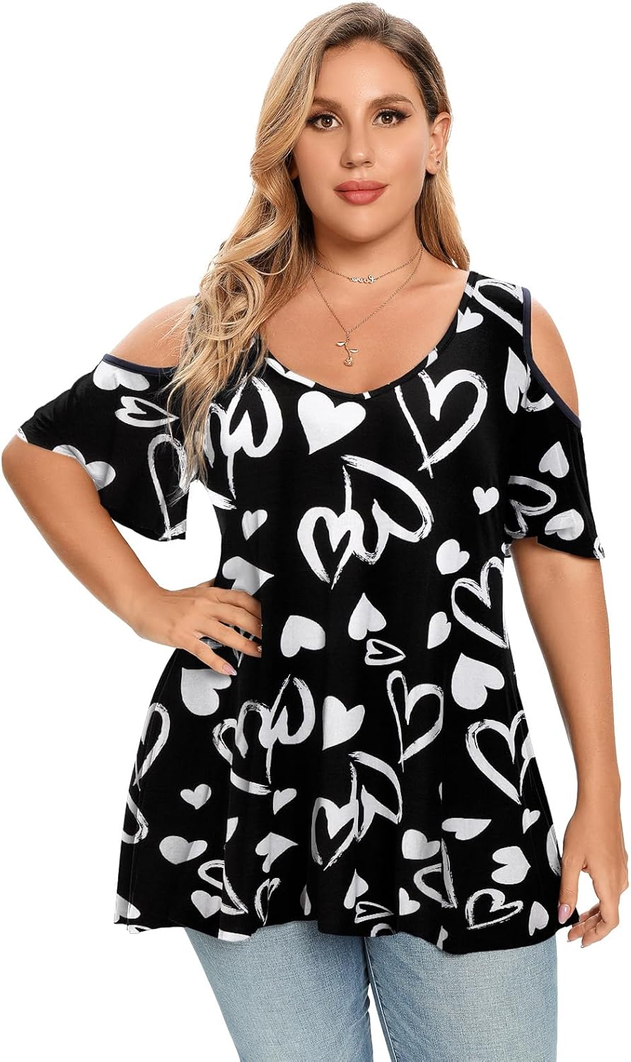 LARACE Plus Size Tunic Tops For Women V neck Short Sleeve T-shirt Cold Shoulder Loose Summer Tops Blouse