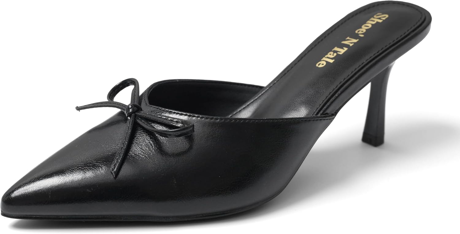 Shoe'N Tale Pumps for Women Kitten Heels Bow Heeled Sandals Closed Pointed Toe Slip-ons Dressy Stiletto Mules
