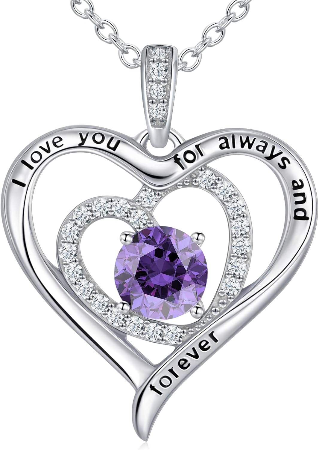 S925 Sterling Silver Necklace for Women, Valentines Day Gifts for Her, Love Heart Birthstone Necklaces for Women, Wife Jewelry, Mom Birthday Valentines Mothers Day Gifts, Girlfriend Necklaces, Daughter Heart Jewel, Anniversary for Her