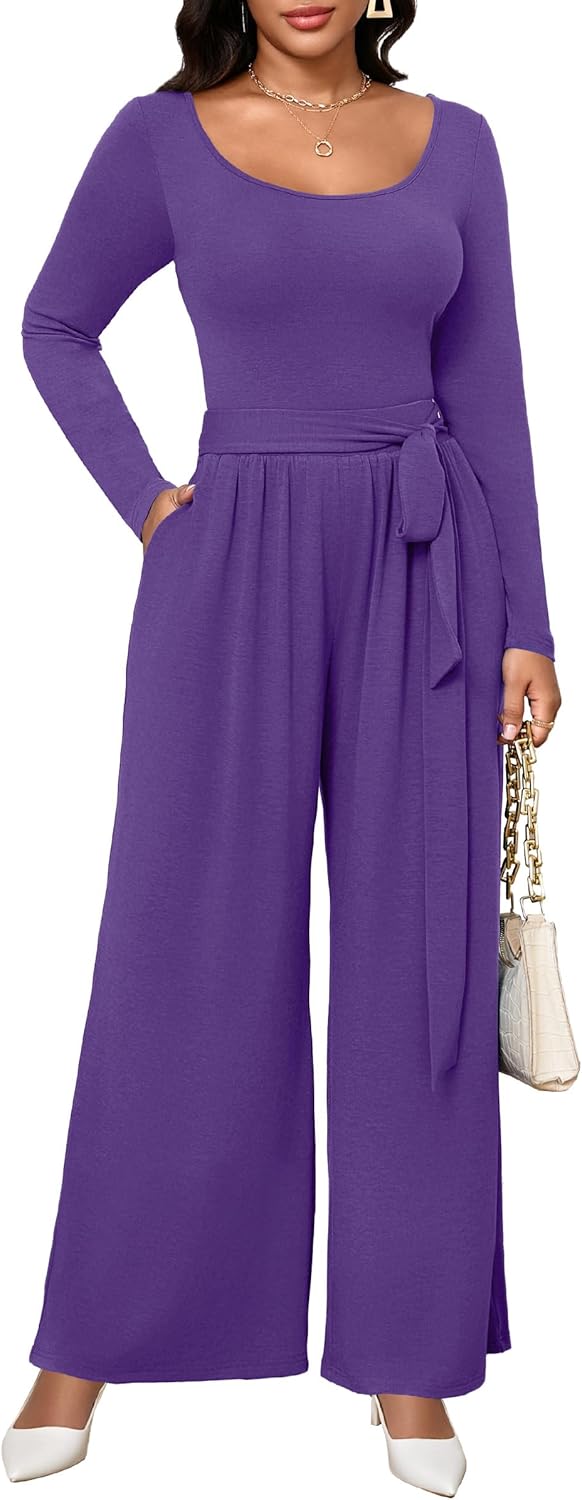CLOCOR Womens 2 Piece Outfits Sweatsuits - Tracksuit Set Long Sleeve Crop Top & Drawstring Wide Leg Pants with Pockets