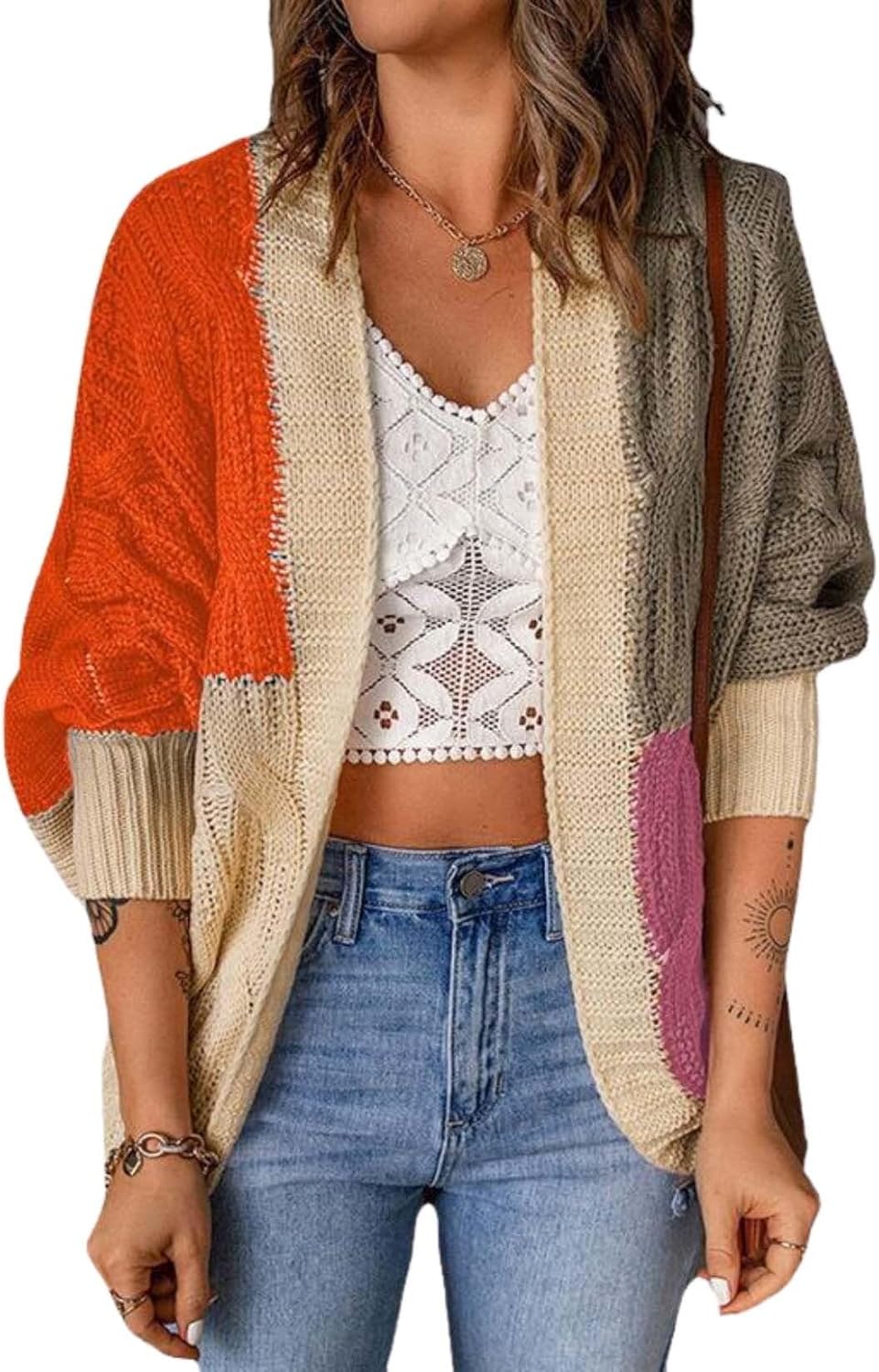 Womens Colorblocking Cardigan Feel Cozy Thick Knit Sweater Keep Warm and Fashionable in Autumn and Winter Season