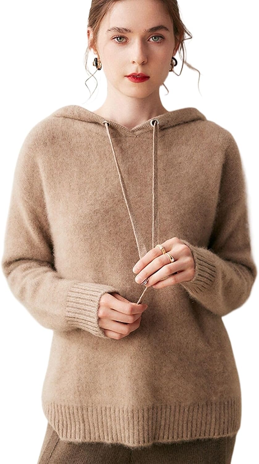 Women's Cashmere and Wool Blend Long Sleeve Hoodie Thicking Knit Pullover Sweater for Winter and Fall, Outdoor Wear