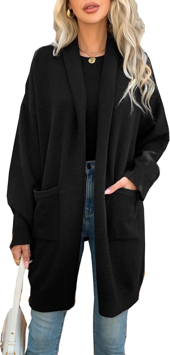 Long Cardigan Sweaters for Women Oversized Open Front Lapel Soft Knit Casual Cardigan with Pockets
