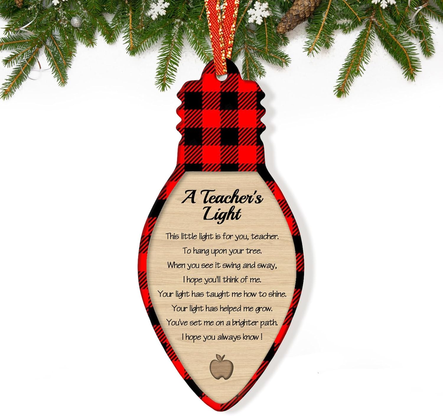 - Teacher Christmas ornaments 2025: A teachers light Christmas ornament features a light shape design with double side printing. Hang the teacher appreciation gifts ornament on Christmas tree will bring family and friends a joyful feeling of the holiday festival