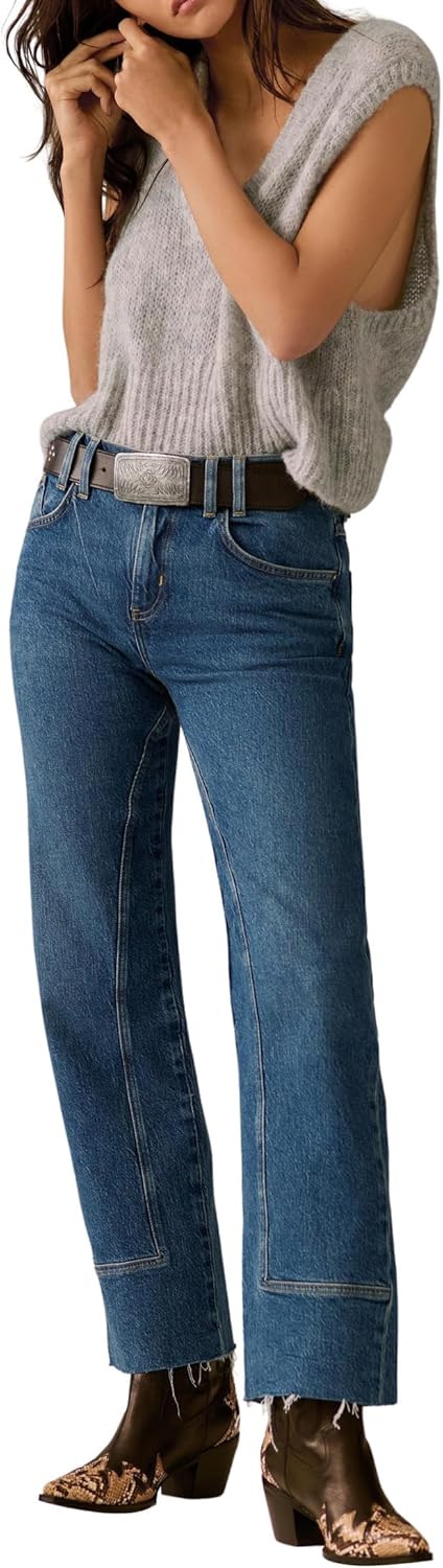 Free People Womens Risk Taker Mid-Rise Straight