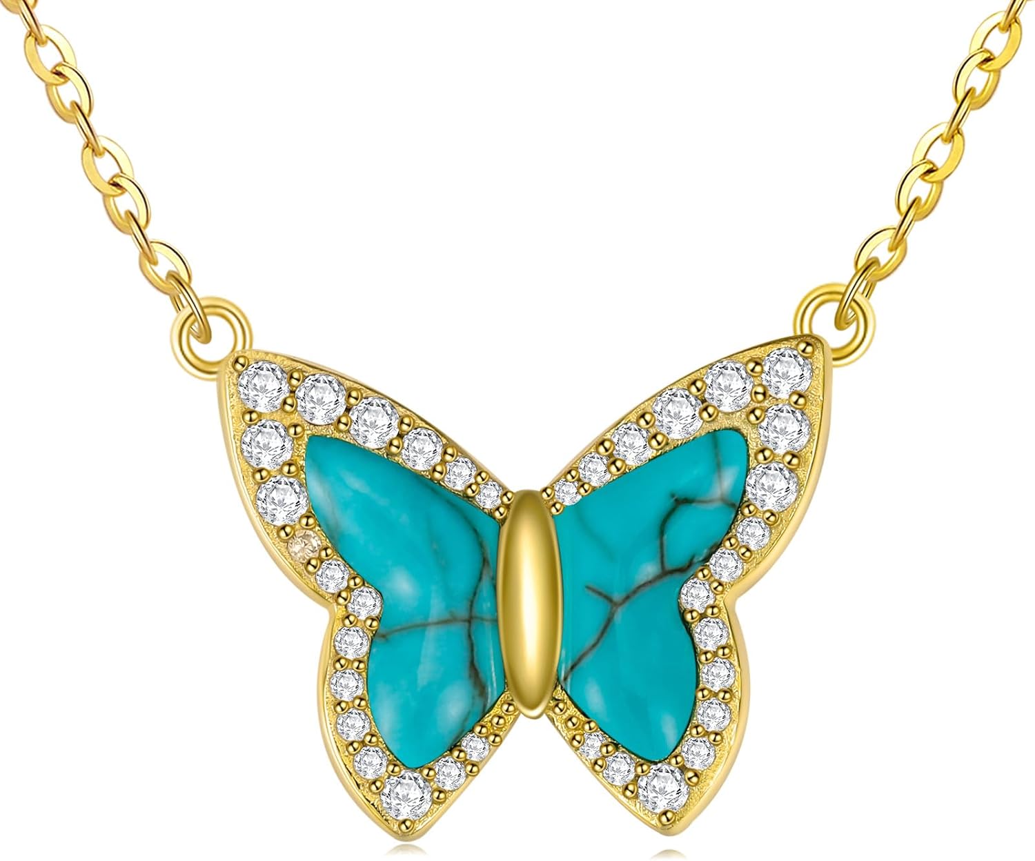 Turquoise Butterfly Necklace for Women 925 Sterling Silver Butterfly Pendant Necklace 18K Gold Plated Butterfly Jewelry Gift for Wife Girlfriend Mom