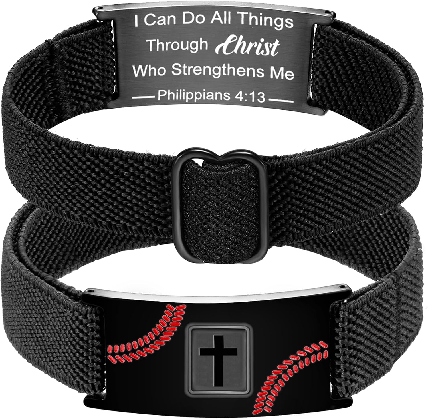Baseball Bible Verses Cross Bracelet for Boys Men Coach Team Kids Player Adjustable Strap Christian Religious Bracelets Baseball Baptism Jewelry Gifts for Him Valentines Day Birthday