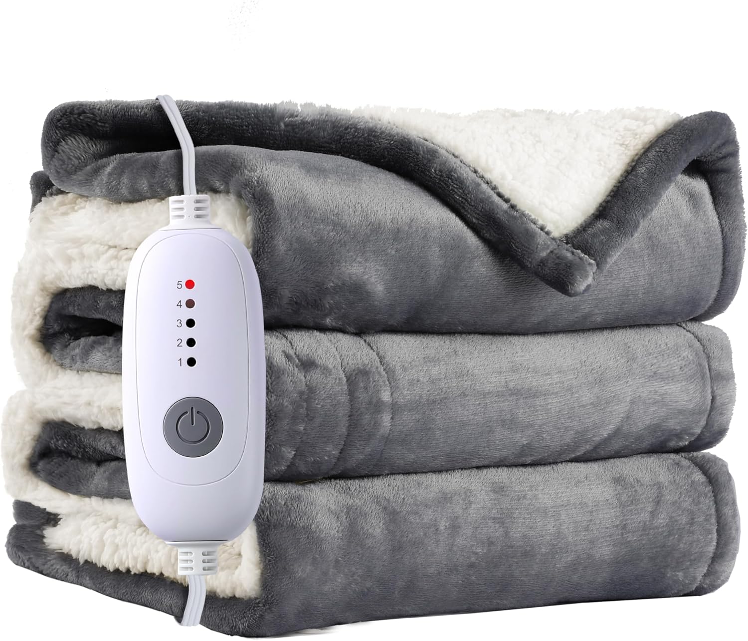 Electric Blanket Full Size 72"x84",Ultra-Soft Flannel Sherpa with 5 Heat Settings & a 10-Hour Adjustable Timer, Grey