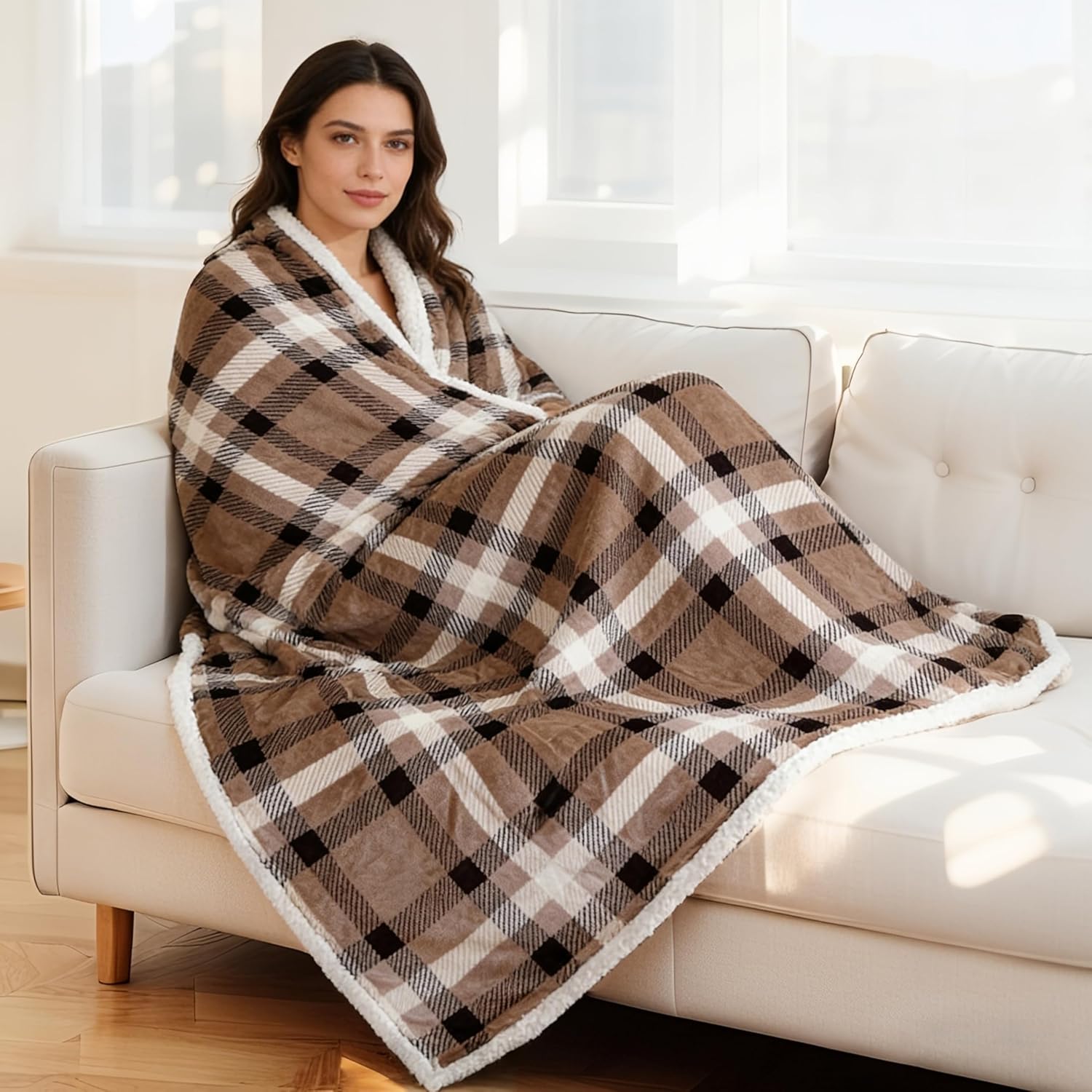 Electric Heated Blanket Full Size 72"x84", Soft Flannel with Overheat Protection, 10 Adjustable Heat Settings & 12-Hour Auto-Off Timer, Fast Heating for Winter Comfort, Brown Plaid