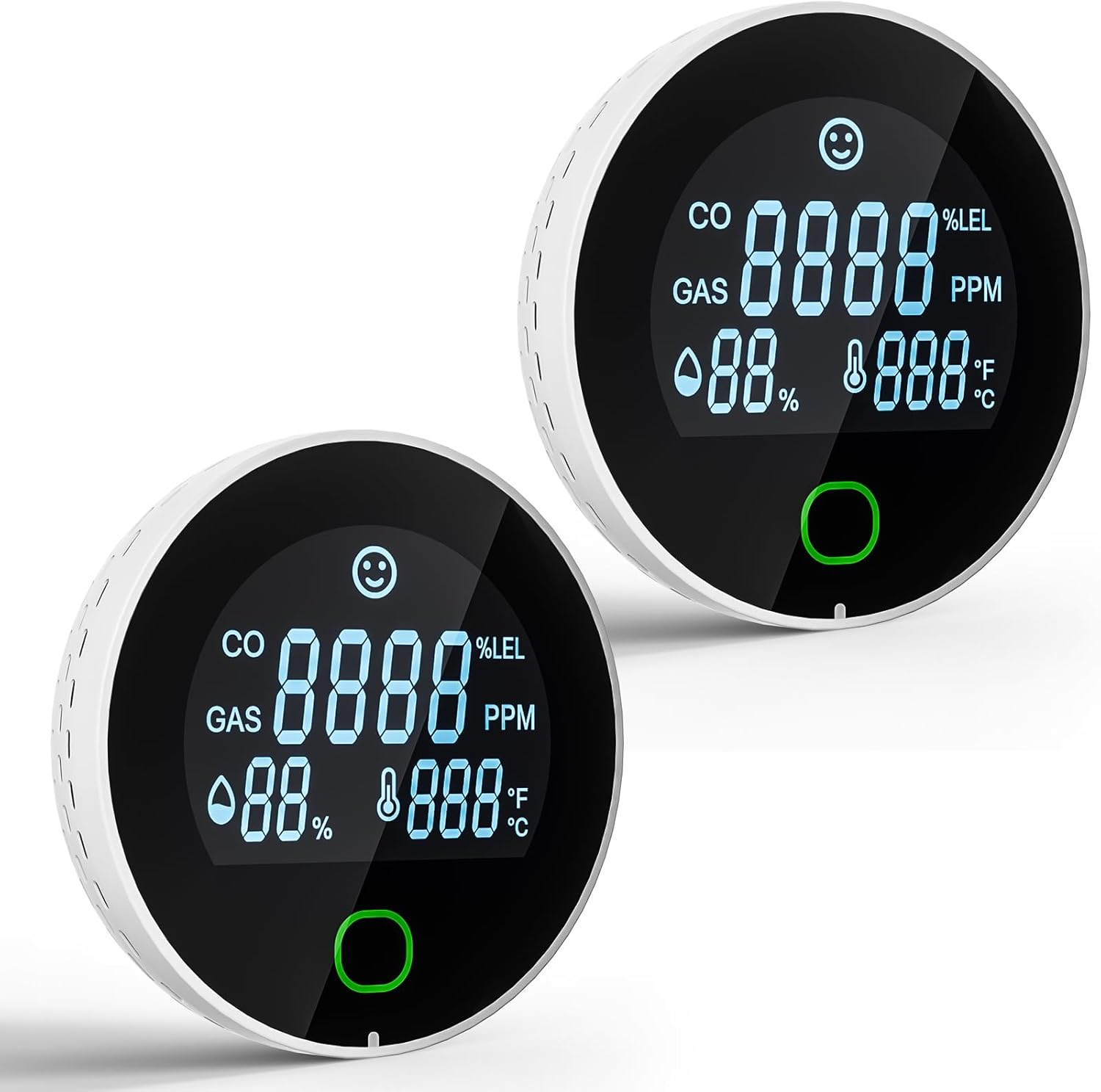 - 4-in-1 Gas & Carbon Monoxide Detectors: This 4-in-1 advanced CO detector monitors Gas, Carbon monoxide, Temperature, and Humidity simultaneously, keeping you and your family at peace