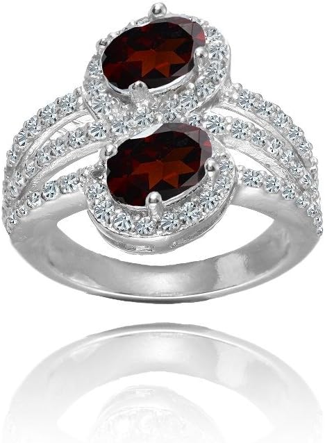 Ice Gems Sterling Silver Garnet and White Topaz Oval Halo Friendship Ring
