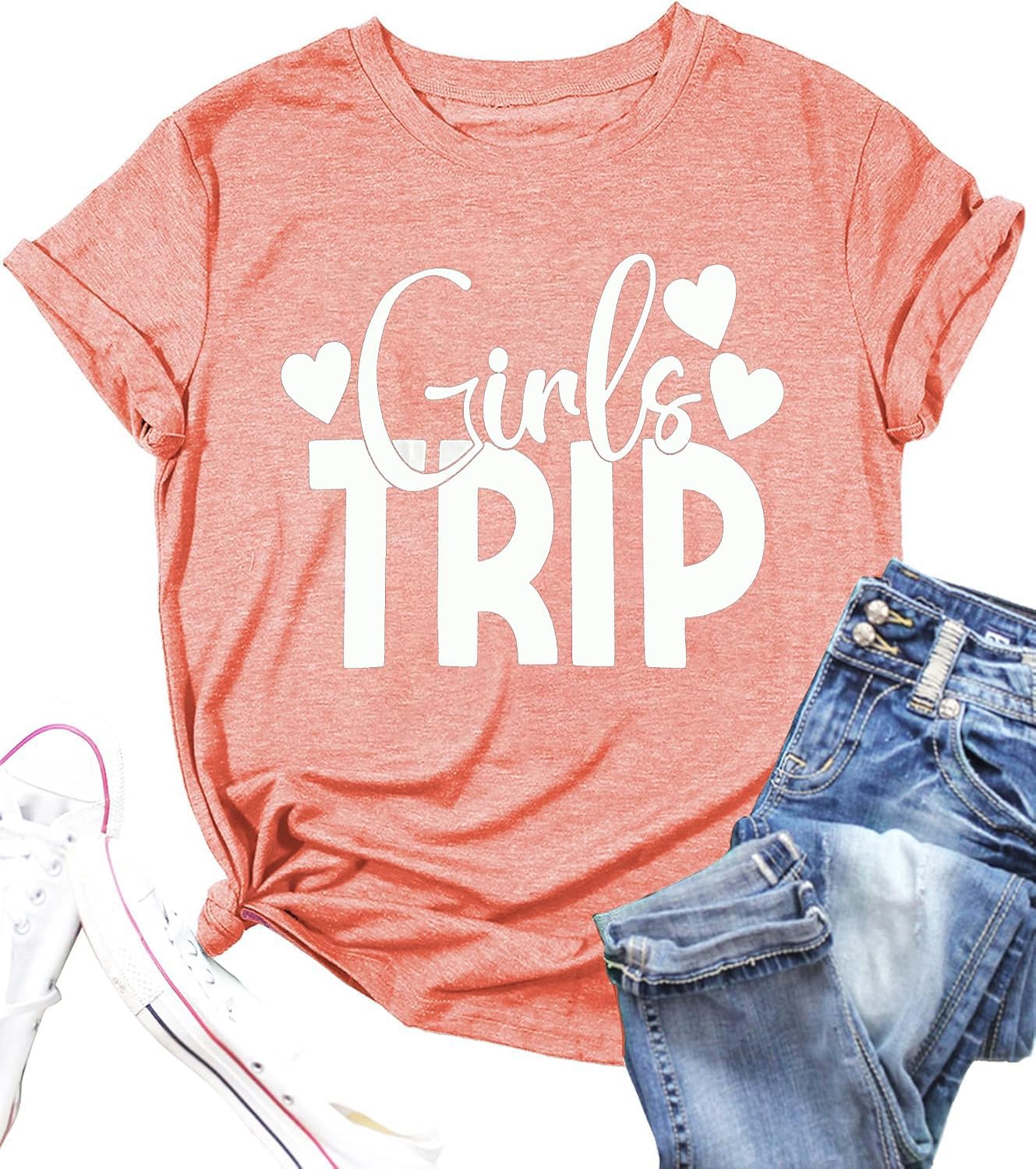 Girls Trip Shirts for Women Plane Travel Graphic Tees Vacation Shirts Letter Printed Hiking Casual Short Sleeve Tee Tops