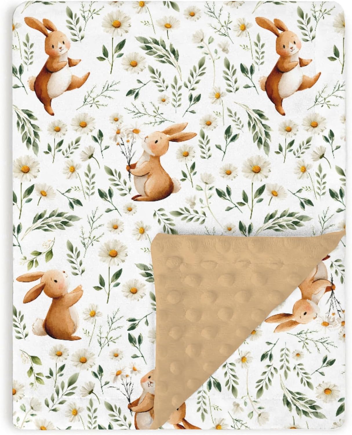 Brown Baby Blankets for Girls 30 x 40, Soft Double Layer Minky Blanket with Dotted Fleece Back, Nursery Bed Receiving Quilt Newborn Infant Toddler Shower Gift Bunny Spring Daisy Flower Theme